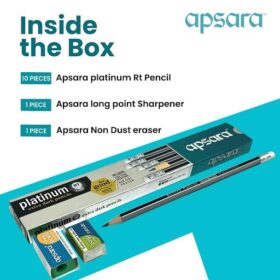 Apsara Platinum Pencils Rubber Tip, Hexagonal Body for Strong Grip, Extra Dark & Easy Sharpening, Good Handwriting, Soft Wood for Easy Sharpening, Free Sharpener & Eraser (Pack of 10 Pencils)
