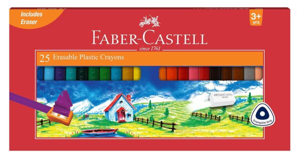 Faber-Castell Erasable Plastic Crayon Set – 70mm, Pack of 25 (Assorted)