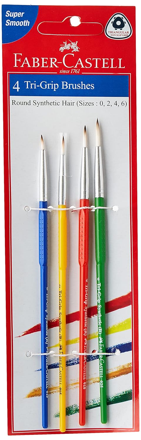 Faber-Castell Tri-Grip Brush – Round, Pack of 4 (Assorted)