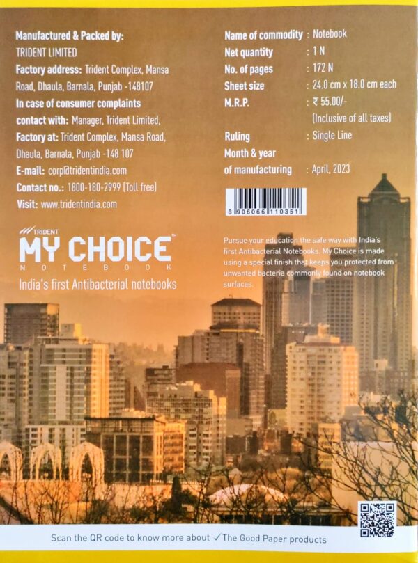 My Choice notebook is curated keeping in mind the beauty of forests. The paper used in making the notebook is manufactured using wheat straw, an agri-residue, and not trees.